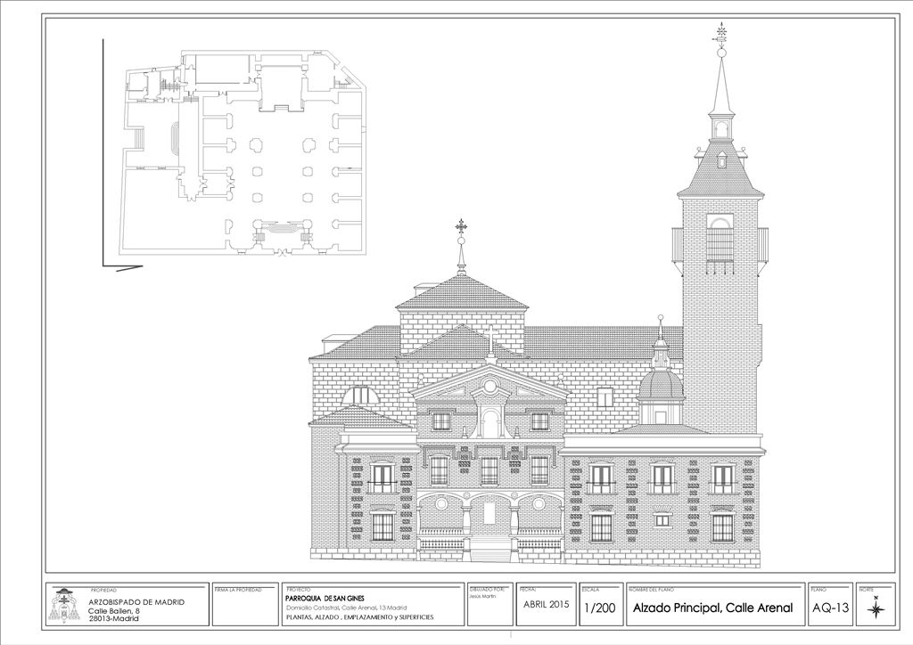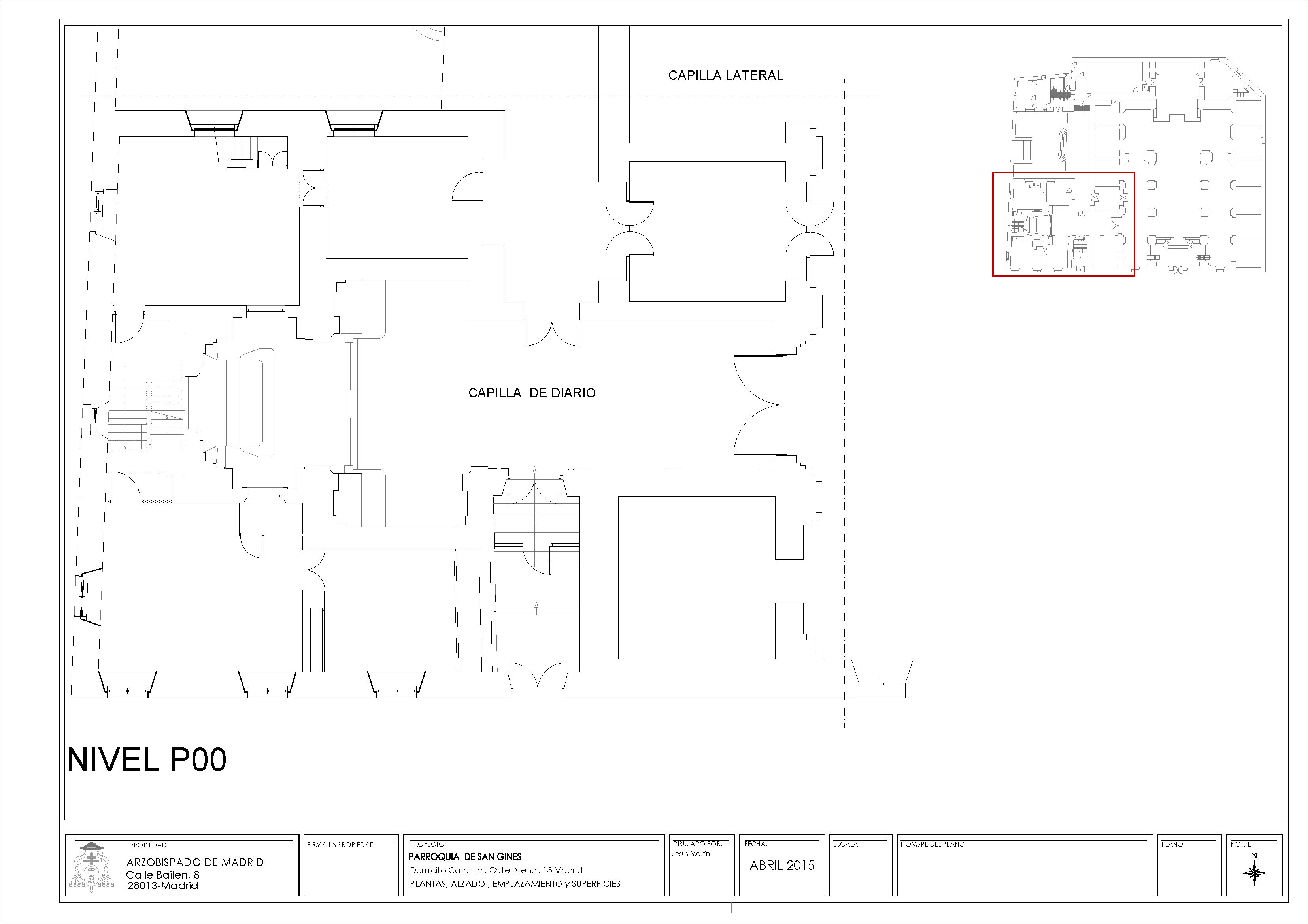 Levantamiento de las distintas plantas del complejo parroquia de San Ginés en Madrid.